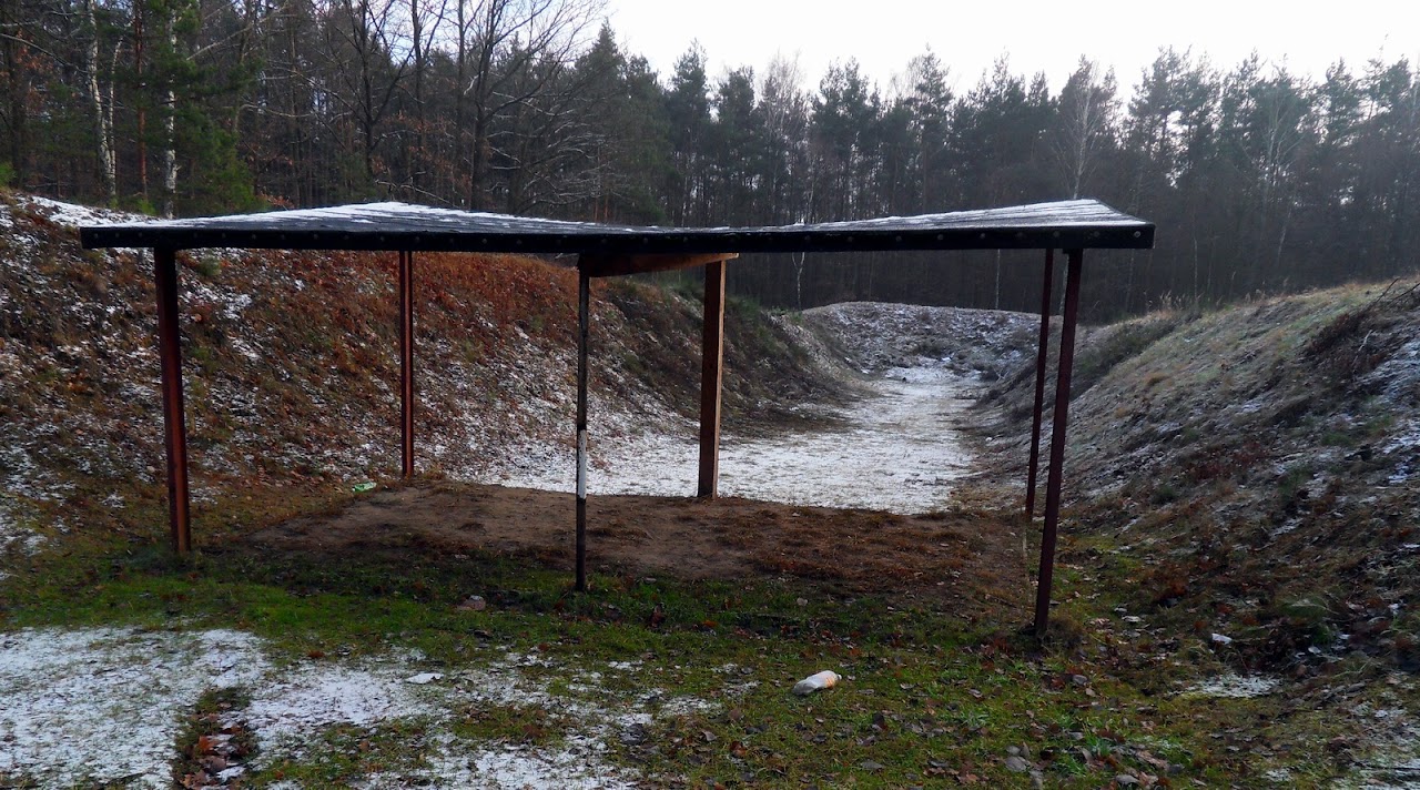 Strzelnica w lesie. Wracając do Radomska często ją mijamy. Jesienią można tam czasami spotkać ucztujących myśliwych po polowaniu. Można tam znaleźć różne ciekawostki (na foto).